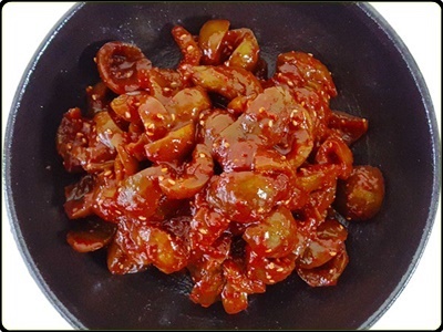 2. 매실 자르기: 손질한 매실을 일정한 크기로 자릅니다.