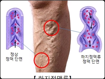 - 하지 정맥류 증상 - 확장되고 잘못 튀어나온 정맥: