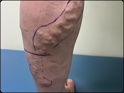 - 증상 설명: 하지 정맥류는 다리와 발의 혈관이 확장되어 파란색 또는 보라색으로 나타날 수 있습니다. 이는 피부 아래쪽에서 부어오르고 튀어나온 정맥이 특징이며, 시각적으로 뚜렷하게 관찰됩니다.